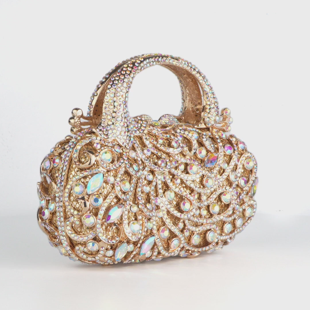 Embrassez l'incarnation du luxe avec le sac à main Karlie Pavonian Style. Ce chef-d'œuvre doré, incrusté de strass, attire l'attention avec son somptueux design de vrilles et de bijoux. Idéal pour la femme qui cherche à faire une déclaration audacieuse, ce sac à main vegan & ; cruelty-free est une démonstration étonnante d'extravagance et de style.
